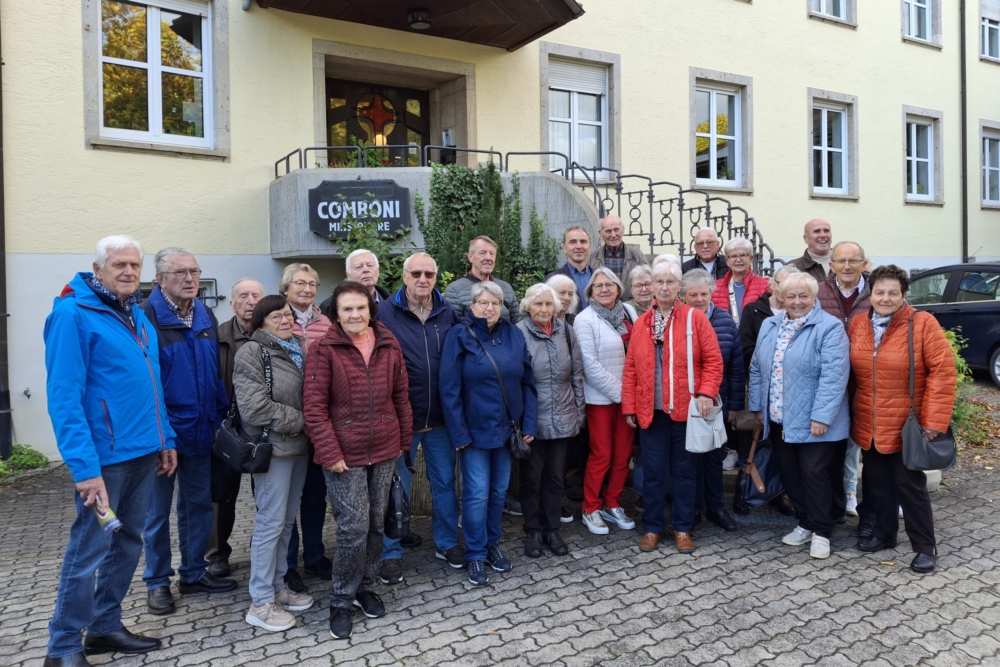 Am 9. Oktober war die KAB-Gruppe aus Herlikofen unter der Leitung der Vorsitzenden Irmtraut Daubner auf Wallfahrt. Auf den Spruen des Malerpfarrers Sieger Köder hielten die Teilnehmer eine Andacht in der St. Stephanus-Kirche in Wasseralfingen, bevor sie in Ellwangen das Sieger-Köder-Museum besuchten. Da die Gruppe auch einen Bezug zum Comboni-Pater Anton Hägele (1903-1979) hat, der aus Herlikofen stammt und in Ellwangen und Umgebung ein sehr geschätzter und aktiver Seelsorger war, kamen die Wallfahrer nachmittags zur Besichtigung in die Kapelle der Comboni-Missionare Dort erläuterte Pater Markus Körber ihnen die vier Glasfenster aus dem Jahr 1951, die von der Kunstglaserei und Glasmalerei Anton Deininger und Sohn hergestellt worden waren.