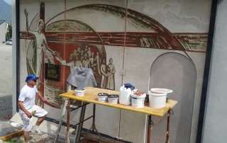 Das Sgraffito „Geht, ich bin bei euch“ wurde 1972 von Bruder Hans Oberstaller in der Kapelle des Schülerheimes „Xaverianum“ angefertigt. Als das Haus 2016 abgebrochen wurde, hat man das Sgraffito in drei Teile geschnitten und als […]